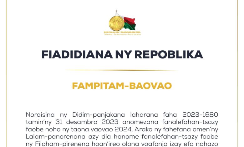 Antananarivo, faha 02 Janoary 2024 – Namoaka didim-panjakana fanalefahan-sazy ny fitondram-panjakana.